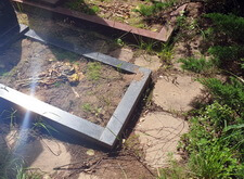 Затем нам предстояло разрешить следующую проблему – провалившийся цветник. Для этого мы удалили верхний слой грунта, и сварили жёсткий каркас из металлической сетки, который больше не позволит конструкции просесть.