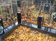В этом заказе необходимо было изготовить и установить комбинированную ограду. Гранитные столбы, гранитная подложка и облицовка и металлические пролеты из кованных элементов. В дальнейшем необходимо будет поднять уровень пола до одного уровня с подложкой и установить памятники.