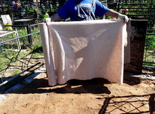 Затем мы засыпали место захоронения грунтом и пескобетонной смесью, тем самым приподняв участок. Все работы были произведены точно по уровню, так что возможность появления холмов или впадин была исключена.