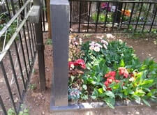 Правильно стоящие памятники, закрывающаяся калитка, свежая лавочка |